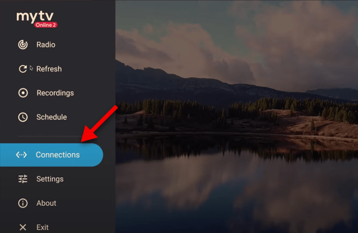 1-Click on menu button on your remote controller, then scroll down and choose Connections