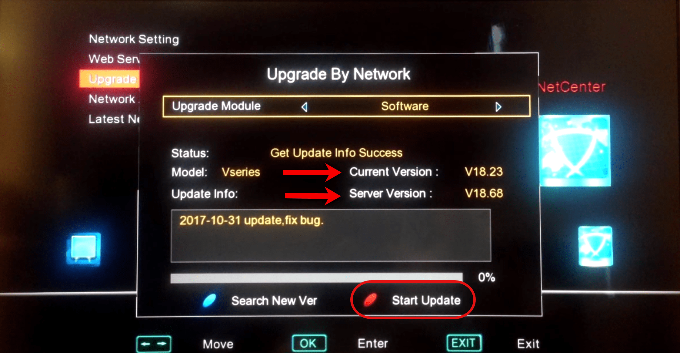 2-In this pop-up window, you can see the current and latest released version. Click the red button on your remote controller to start the update process. Once you have been prompted for update confirmation, click Yes.