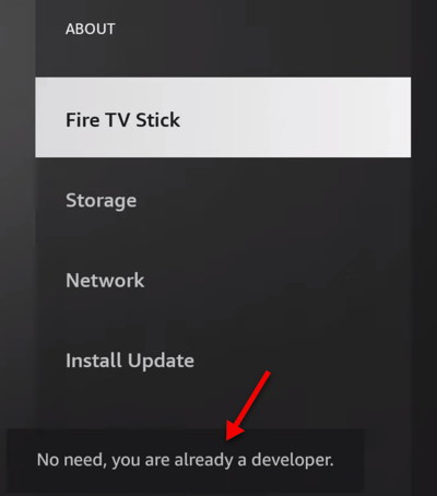 4-move on to Fire TV Stick and press OK button 7 times. While taking the above picture, I pressed 5 times already to at the button it is asking me to press 2 times more.