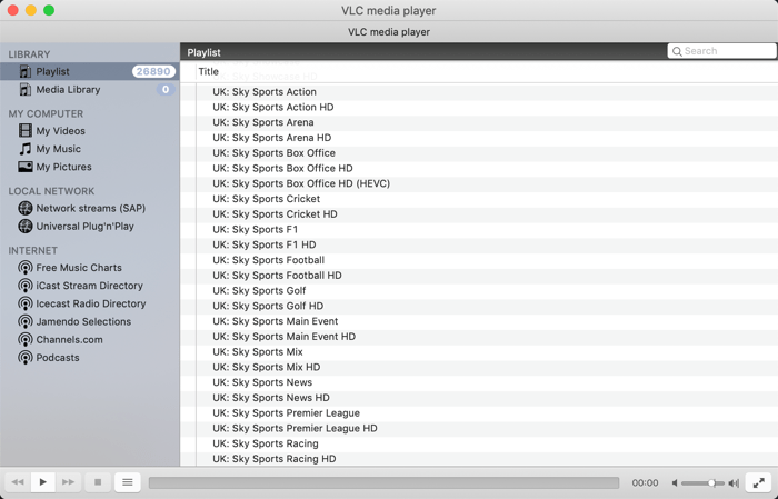 Here you can see I have dragged and dropped a M3U file onto VLC and the channel list is loaded. If I double click any of those channels, or just highlight it and then click play, it will start streaming that channel.