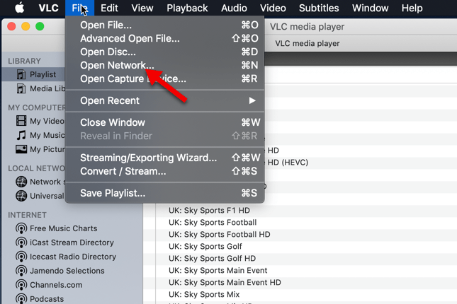 Whether you are on Windows or MACOS, from the top toolbar, click on File > Open Network.