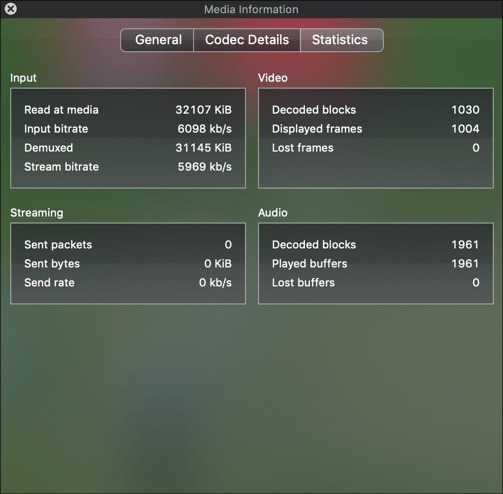 Audio is the same as above but related to the sound. Usually Audio Blocks and Buffers number correlate. Noises in audio or audio loss can be identified by Lost Buffers in this section.