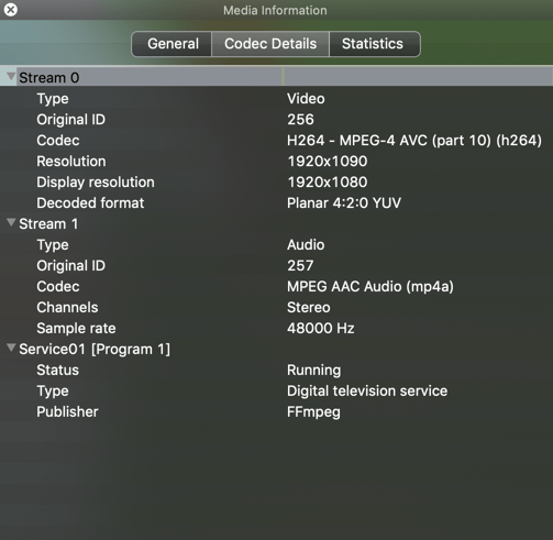 Codec Details is a deep insight on the material of the stream content. You can find out the actual resolution of video, the codec and audio channels and sample rate. So if you get into an argument with your source like they claim the feed is 4K but what you see has lower resolution, you can play the stream in VLC and send them a screenshot of Codec Details page as a proof of the content being 1080pHD. The reason I made that example is that sometimes stats on IPTV CMS might not be correct, but testing the actual stream in VLC is the best to verify that.