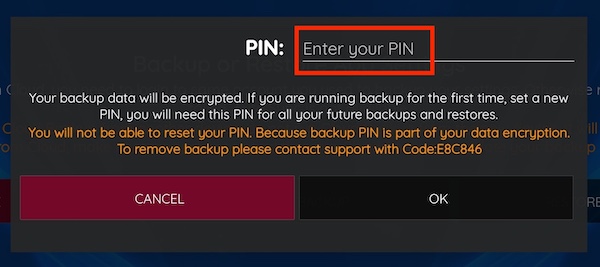 Since it is getting encrypted for security, a PIN is necessary. Enter your PIN number and click OK.